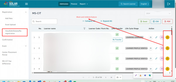 SOLAR मध्ये BLOCK/UNBLOCK फीचर असले तरी खूप विद्यार्थी असल्यास हे मॅन्युअली करणे वेळखाऊ व अव्यवहार्य आहे.